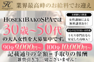 90分コース:9,000円~ 100分コース:10,000円~ 120分コース:12,000円~ 150分コース:15,000円~ 180分コース:18,000円~ 基本料金は上記金額からのスタートとなり、別途指名料がプラスされます。 さらに、努力や成果に応じて収入アップも十分に可能です。